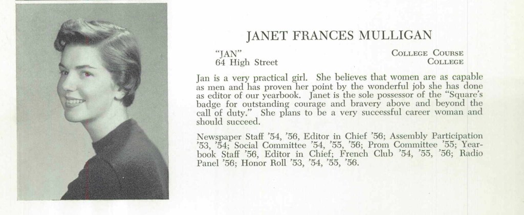 Growing up in Foxboro and attending the local schools, Janet became a leader in high school. She achieved high academic and social success, as you can see from her high school yearbook page.
