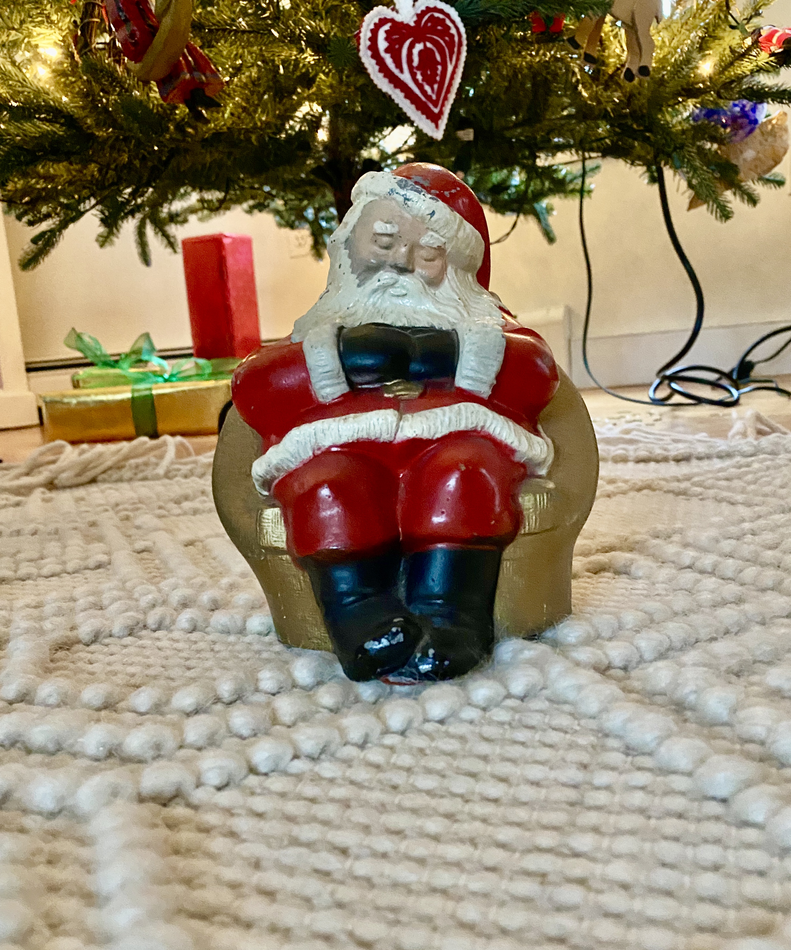 Every year Kathy places the Santa bank that my aunts Marion and Gertie gave to me under our Christmas tree. I think I was five years old when I received their gift. Here is a picture of it sitting under our present tree.