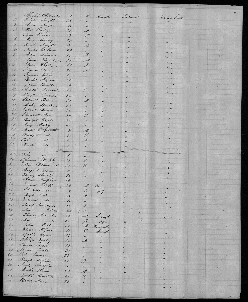 Here is a photo copy of the last page Neptune’s passenger manifest. You can just make out numbers 4 and 5 – Pat Reilly and Rose Kearnan (sp).